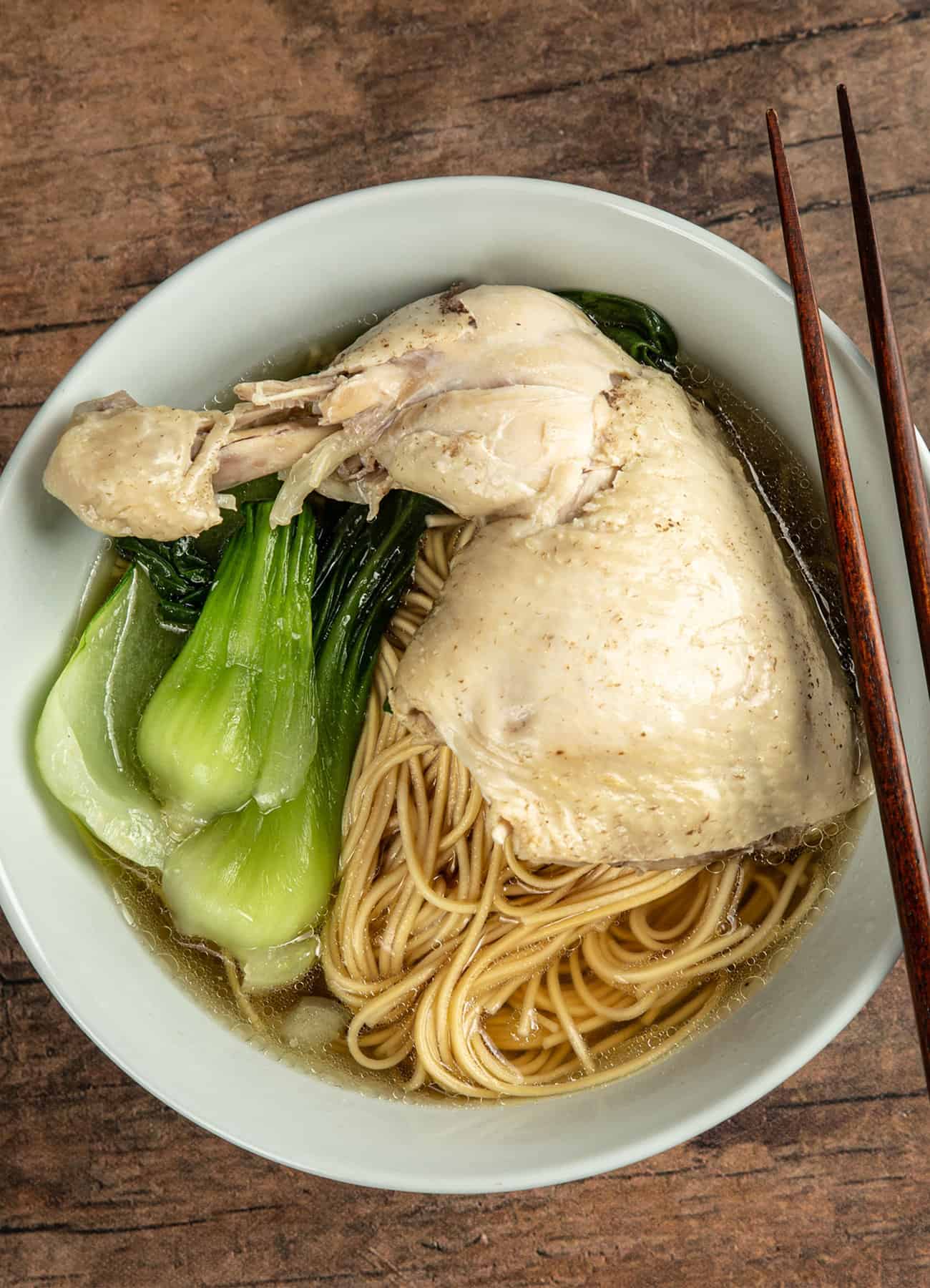Noodles: You can use your choice of thin or thick noodles to make this Chinese Chicken Noodle Soup recipe. Such as Knife-cut noodles (刀削麵), Lamian (拉麵), Thick noodles (粗麵), Ho fun (河粉), Rice vermicelli (米粉), Rice noodles (米線), Lai fun (瀨粉), or Egg noodles (油麵).