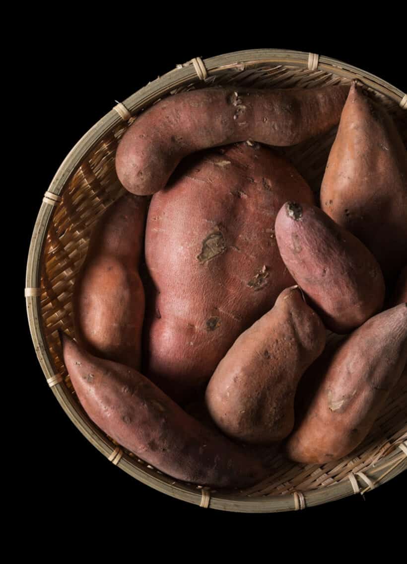 Sweet potatoes, often confused with yams, are far from potatoes with a sweet boost. They taste like dessert but healthy like green leafy veggies. The eye-catching bright orange flesh with a creamy buttery sweet taste. Simple but irresistible.